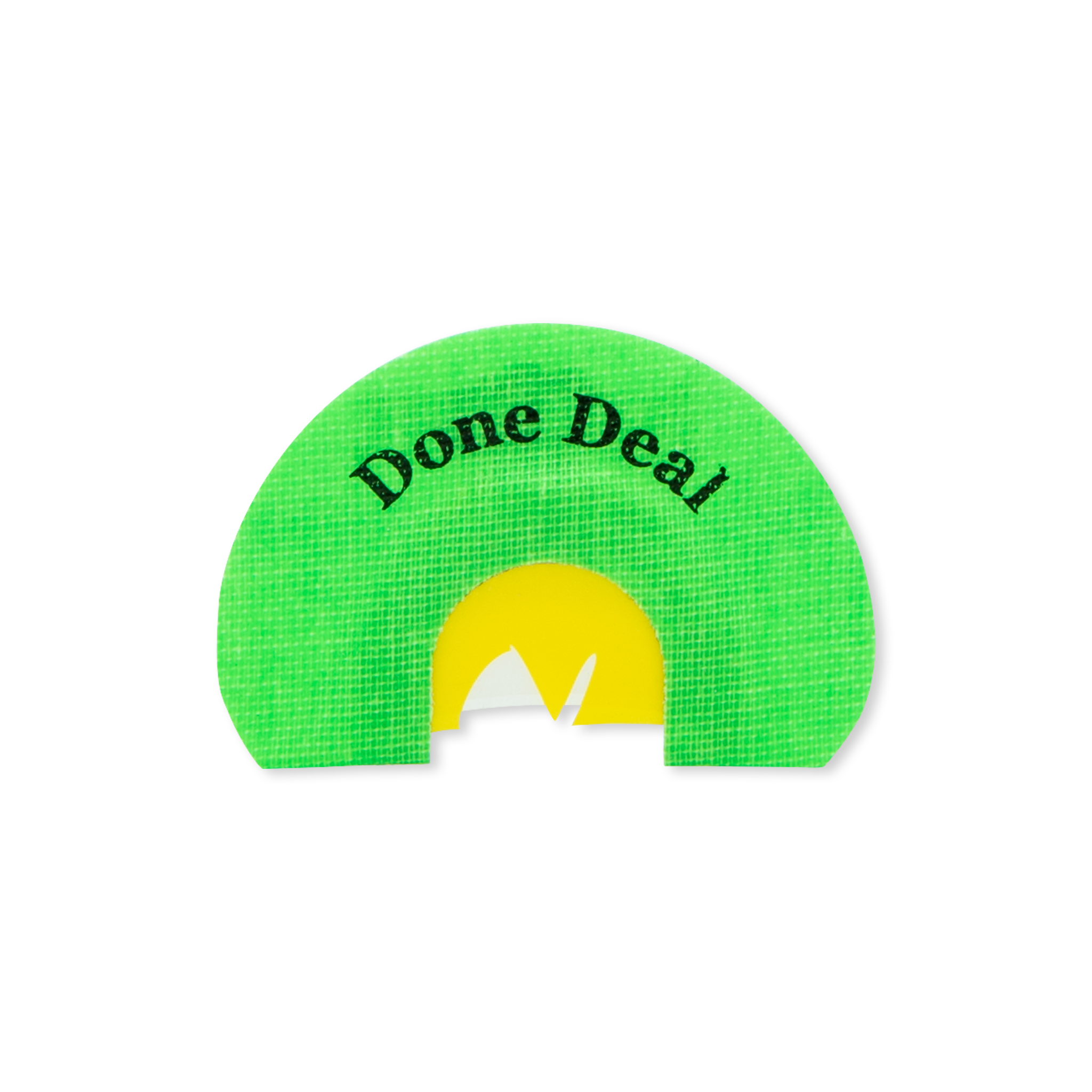 The Done Deal is a 3 reed, combo cut diaphragm call with a reputation for getting the job done. As you'll learn from its namesake, it won't take much coaxing with this call to get the deal done. This diaphragm has a half bat-wing cut, half v-cut and offers you the best of both the bat-wing and the v-cut in the same call. This call has been consistently smokin' big gobblers for our field staff year after year, and we're confident it'll do the same for you.