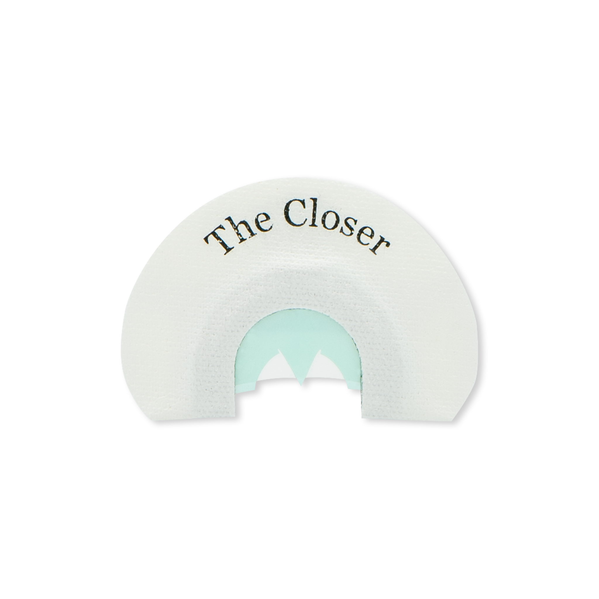 The Closer is a 2 reed call featuring a setback bat-wing cut. Consisting of 2 thin latex reeds set back in the frame, The Closer is the perfect call for using soft talk to close gobblers into gun range.